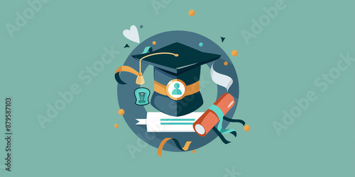 Vektor 2D-Grafik Doktorhut mit Abschlusszertifikat