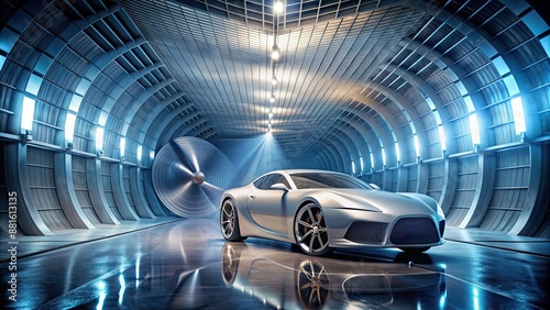 Efficient aerodynamics of a vehicle being tested in a wind tunnel , aerodynamics, vehicle, wind tunnel