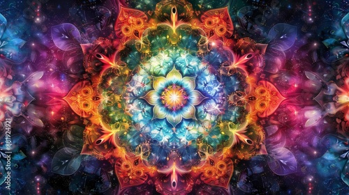 Detailed mandala design with vibrant colors and concealed Easter Bunny motifs