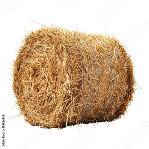 A close-up of a round bale of hay , isolated on white background, transparent background