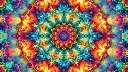 Vibrant, mesmerizing abstract design featuring multiple layers of the same image, blended to create a kaleidoscope of colors and shapes, perfect for digital art projects.