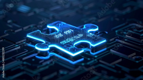 Abstract design of a digital puzzle with interconnected pieces, symbolizing integration, compatibility, and system interoperability. Illustration, Image, , Minimalism,