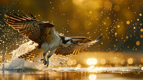 An osprey plunging into water to catch a fish