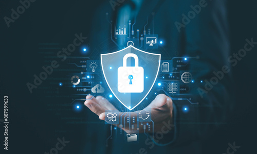lock mark cybersecurity internet, protect attacks from a hacker. concept of password privacy on an online system, secure data from crime, virus cyber. cyber security technology digital information.