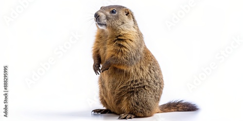A Curious Marmot Standing Tall on a White Background, marmot , mammal , rodent , wildlife