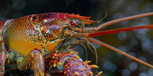 Creative Close-up of Lobster Shell Texture and Cracked Chili: Macro Shot of a Lobster's Shell with Detailed Patterns and Cracked Chili Texture. Manually Adjusted Exposure and Aperture for Sharp Subjec