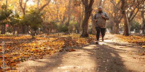 #290484832Person Walking Dog on Autumn Forest Trail with Vibrant Fall Foliage