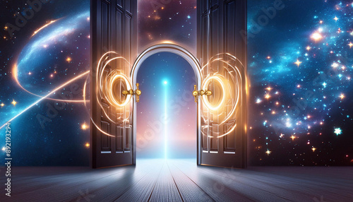 宇宙空間に開かれたゲートがある。ゲートに一人の人間が立っている。