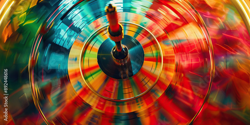 The Fluctuating Fortunes: A game of fortune wheel with market graph segments, spinning to reveal outcomes