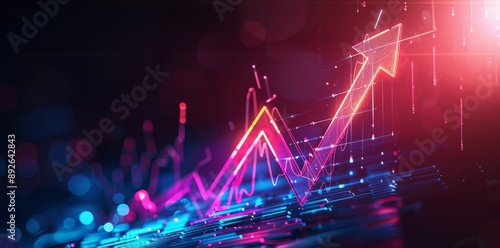 Neon arrow graph showing growth on a dark background. Business and finance concept.