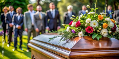 Mourning Flowers and a Closed Casket, Funeral, Death, Remembrance, Grief