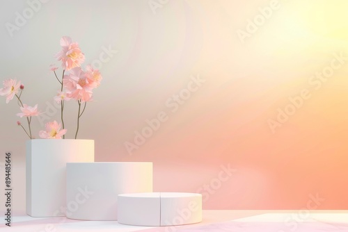 Ściana z flakonem kwiatów. Mockup - tło do prezentacji produktów. Beautiful simple AI generated image in 4K, unique.