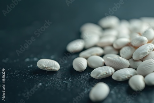 Navy beans are advertised in an ultramodern, supernatural scene, emphasizing plump, white beans with plenty of copy space