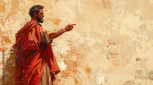 Biblical illustration of Romans 1: Introduction, Greeting, God's Wrath, Gospel Power on beige background with copy space. Suitable for religious events, Christian literature,...