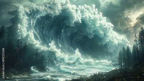 Catastrophic Ocean Tsunami Waves Engulfing Coastal Cities, Showcasing Nature's Destructive Power