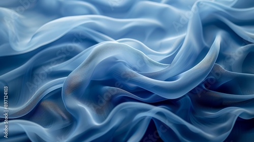 A beautiful blue sheer fabric elegantly cascades over a seamless background, creating a stunning visual display