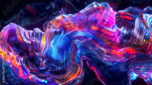 Vibrant neon colored wavy shapes creating an abstract background, ideal for projects requiring a colorful and modern backdrop