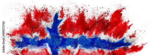 colorful flag of norway with red blue color holi paint powder explosion isolated on white background. norwegian scandinavia european celebration soccer travel and tourism concept.