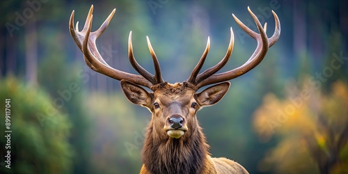 Elk with majestic antlers looking straight ahead , wildlife, nature, forest, animal, mammal, outdoors, elk