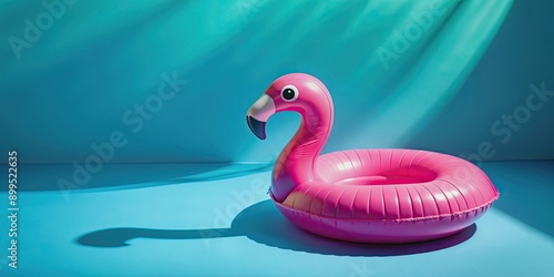 of inflatable circle pink peacock for recreation at sea on blue background with shadow, inflatable, circle, pink, peacock, sea, blue