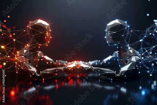 Conceptual art of two humanoid robots in a futuristic duel with glowing energy particles