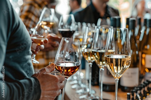 wine tasting event with guests holding glasses and chatting