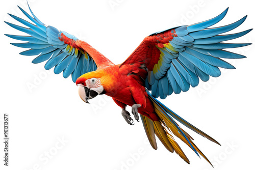 Colorful macaw parrot with vibrant feathers isolated on transparent background, ideal for tropical and exotic design projects
