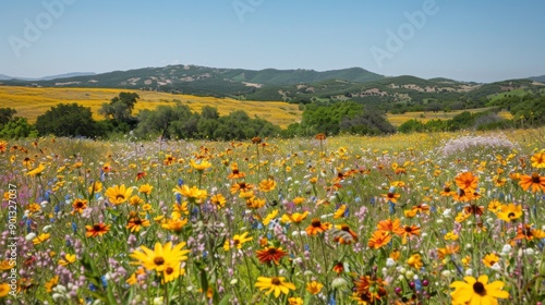 Wildflower Meadows, Expansive fields of wildflowers in full bloom, symbolizing the beauty and importance of natural pollinators