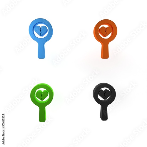 Colorful Broken heart or divorce icon isolated on white background. Love symbol. Valentines day. Minimalism concept. 3D render illustration