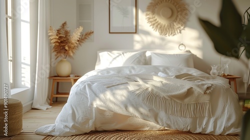 cozy bed featuring crisp white linens and a plush blanket in a tranquil bedroom setting, symbolizing relaxation and utmost comfort for a good nights sleep