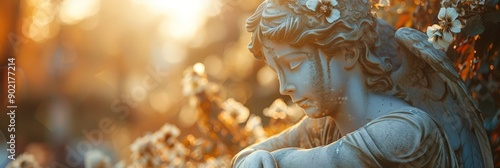 Serene Angel with Blossoms in Sunlight