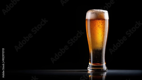 Glass of beer isolated on black background, alcohol, beverage, brew, drink, cold, refreshing, pub, bar, foam, pint, craft, lager