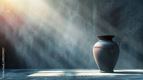 Minimalist Cremation Urn with Sunlight on Empty Background for Memorial Design