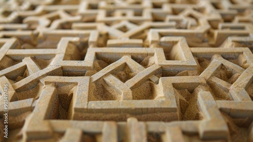 Intricate Stone Carving with Geometric Patterns