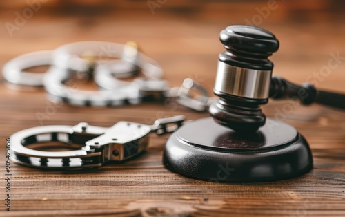 Gavel with handcuffs beside it, legal hammer, crime and justice