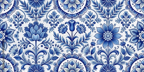 Delft blue dutch seamless pattern Floral blue seamless pattern Vintage dutch tile decor AI Generative