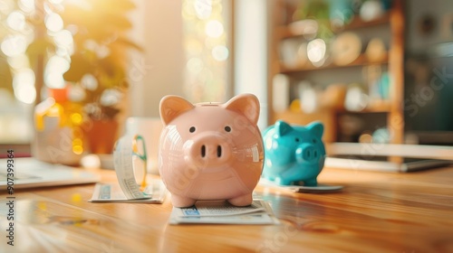 Child's piggy bank with parental debt bills, illustrating family financial impact