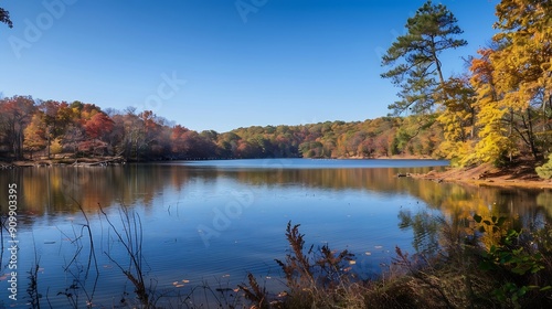Bright Fall Sunny day at The Oak Mountain State Park : Generative AI