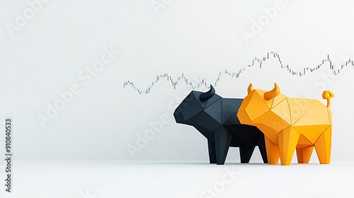 Bear and bull, dynamic stock chart background, futuristic financial market