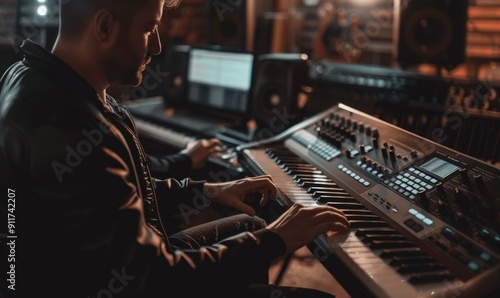 Musician composing music in a studio, channeling emotions and artistic evolution