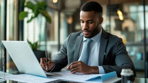 Diligent Male Auditor Reviewing Corporate Financial Records for Accuracy in Office Setting