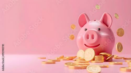 oszczędności, skarbonka, pieniądze, pastelowy, minimalizm, 3D render