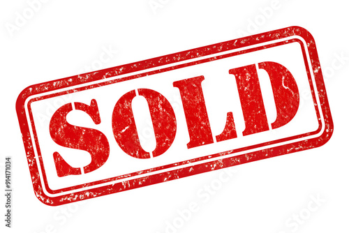 rubber stamp, sold, red-rubber, transparent background, AI generated