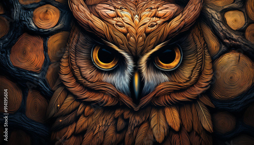 Sowa z drewna, tekstura tapeta, dekoracja generative ai