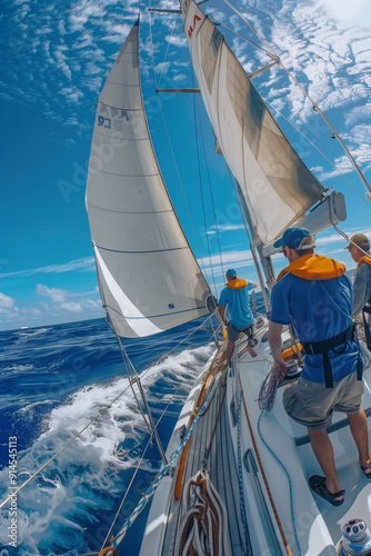 Dynamic Sailing Adventure on a Yacht Amidst Vibrant Ocean Waves Under Bright Blue Skies