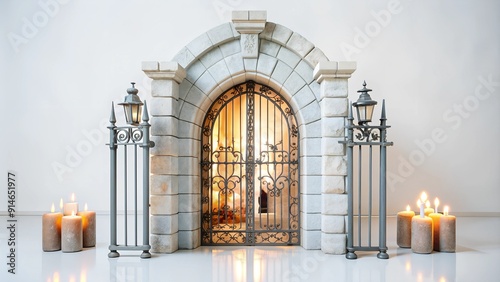 Gothic Mausoleum with Candlelight and White Marble in Peaceful Setting