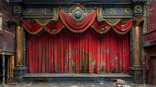 A red curtain hangs in front of a stage