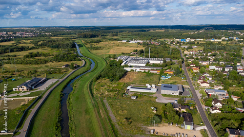 Miasta nad rzeką. Widok z lotu ptaka. Miasto z góry.