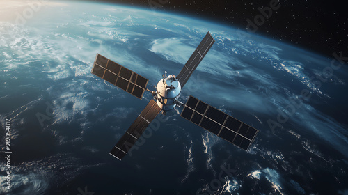 地球の衛星軌道を飛ぶ通信衛星。壁紙、背景