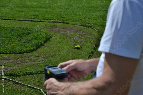 Pilot kontroler do zdalnego sterowania autka auta samochodu rc w dłoniach